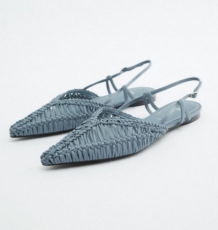Esta sandalia tipo bailarina destaca en la nueva colección de Zara por su diseño original trenzado. Tiene una punta en forma de pico, y una suela plata de 1 cm. Cierra mediante una hebilla en la cinta del tobillo. Además, cuenta con una plantilla AIRFIT®, cómoda y flexible para un mayor confort en cada pisada. Son de un bonito color azul y tienen un precio de 39,95€.