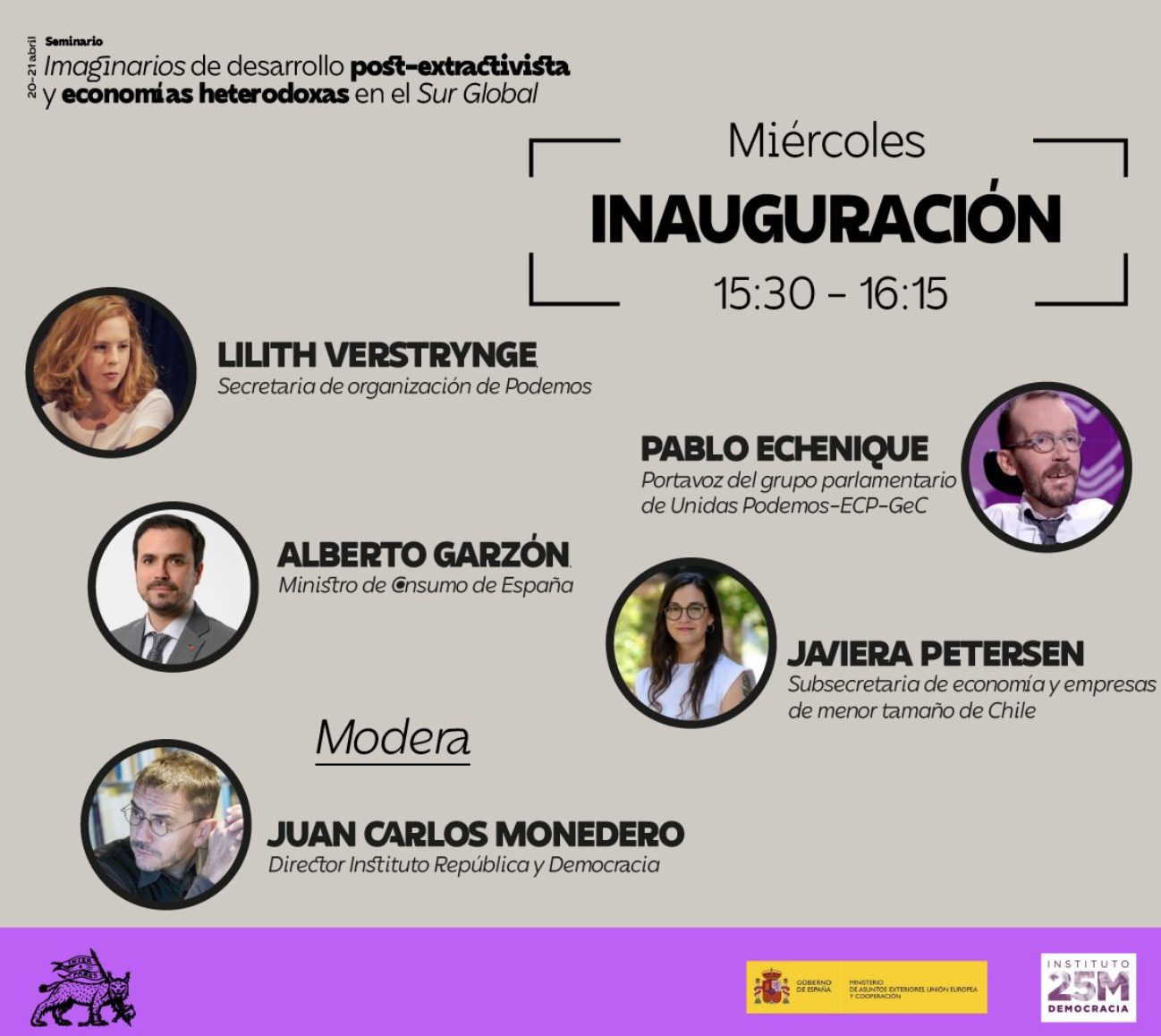 «Si queremos dar respuesta a los nuevos desafíos post pandemia, siempre bajo el paraguas de la Agenda 2030 en su rol universal, integrador y transformador, debemos pensar en el estado de las políticas de desarrollo, y su sustento, la propia teoría del desarrollo en torno a la cual estamos reflexionando y articulando los retos del presente». Esta es la definición del acto en el que participa Monedero. Son dos días dentro de un tour que ha arrancado Juan Carlos para promover según qué ideas. El jueves se clausura.