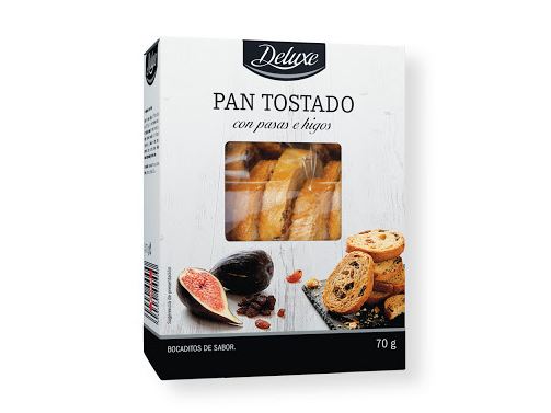 Si hablamos de entrantes, y más específicamente de untables, no podemos dejar de recomendar las tostas de pan con pasas e higos que ofrece Lidl bajo su marca de productos gourmet Deluxe. El punto dulce de las pasas y el higo casa a las mil maravillas en el pan de igual forma que lo harían las aceitunas, aunque aquí sin ese punto de acidez. Aunque el tamaño es más bien pequeño, esto es una ventaja: ¿Cuántas veces has empezado el paquete de pan para canapés y te queda a la mitad?