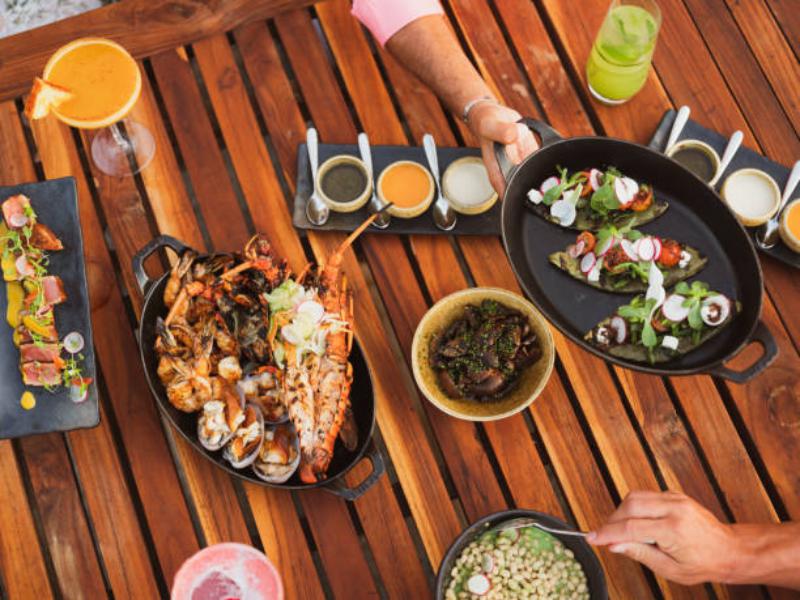 Cabo San Lucas es sinónimo de buenos mariscos, ya que las flotas pesqueras locales atracan cerca de muchos de los mejores restaurantes en Los Cabos. Los lugares para comer incluyen una gran variedad de opciones gastronómicas. A escoger: platos italianos con pasta hecha a mano en Romeo y Julieta, con una romántica puesta de sol como telón de fondo, suntuosos filetes en El Farallón en Waldorf Astoria, Pedregal mientras disfrutas de una vista extraordinaria, sabrosos tacos y otros platillos auténticos de la comida mexicana en Mi Casa y la langosta más fresca y sustentable en Lorenzillo’s.