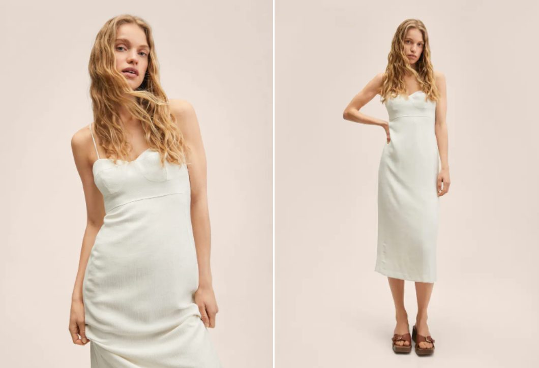 El escote corazón es uno de los que mejor quedan y esa es la razón por la que los vestidos que lo llevan llaman de una forma especial la atención. Un buen ejemplo lo tienes en este de Mango, fluido y con textura, también destaca por su exquisito color blanco, fácil de combinar con todo. Ya disponible en la tienda por solo 49,99 euros, no querrás quedarte sin él.