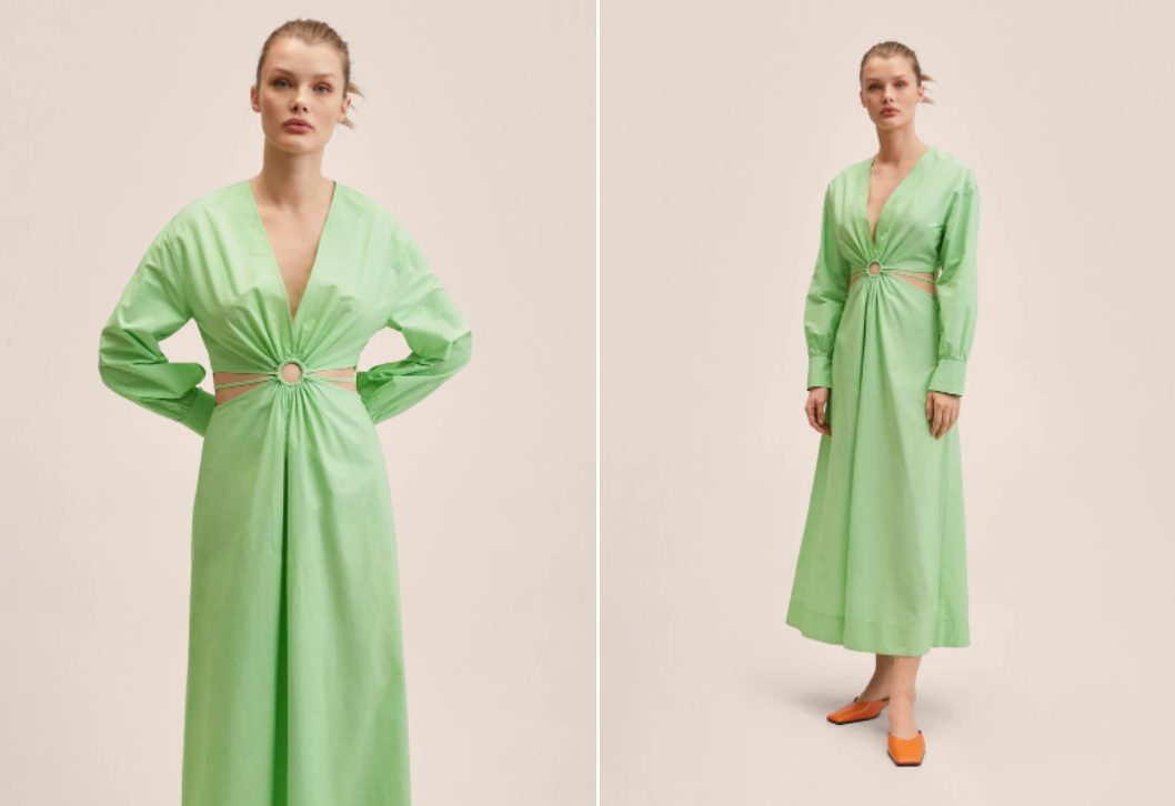 Esta primavera, además del azul cielo, otro de los colores que no faltarán en tu armario es el llamativo verde. Siempre listo para destacar, lo verás por ejemplo en vestidos como este de Mango. Con abertura cut out en la zona delantera y de corte midi, es sin duda una opción sofisticada sin perder lo casual y moderno. Su precio, de solo 39,99 euros, tampoco te hará dudar.