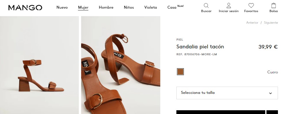 Es una hermosa sandalia de piel con tacón, preferida por muchas de las mujeres en esta temporada de verano. Siendo perfecta para usar en eventos familiares, amigos y fiesta de noche, gracias a su diseño y estilo. Están diseñadas en 100% piel de bovino, con unos diseños de tiras y una pulsera en el tobillo, su punta es completamente cuadrada. Cuenta con un cierre de hebilla y un tacón ancho, este mide 6,5 cm. En la parte del corte es elaborada en 96% de piel de bovino, 4% de zinc; en su parte del forro es de 100% de poliuretano. Entonces, anímate para adquirirlo por la plataforma de Mango a un precio de 39,99 €.