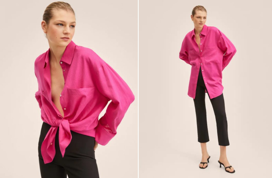 3Camisa de lino oversize de Mango, en el color fucsia que más se lleva
