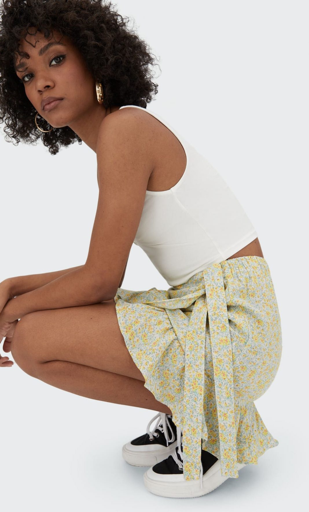 Dentro de la sección casual estilo teen de Stradivarius, otra de las prendas que querrás llevarte a casa es esta bonita falda estilo pareo estampada. Con acabado en suaves tonos amarillos, muy interesantes de cara al verano, la podrás combinar con todo lo que imagines para aportar un aire diferente a tu look. Además, la tienes disponible por solo 17,99 euros. Una gran oportunidad.