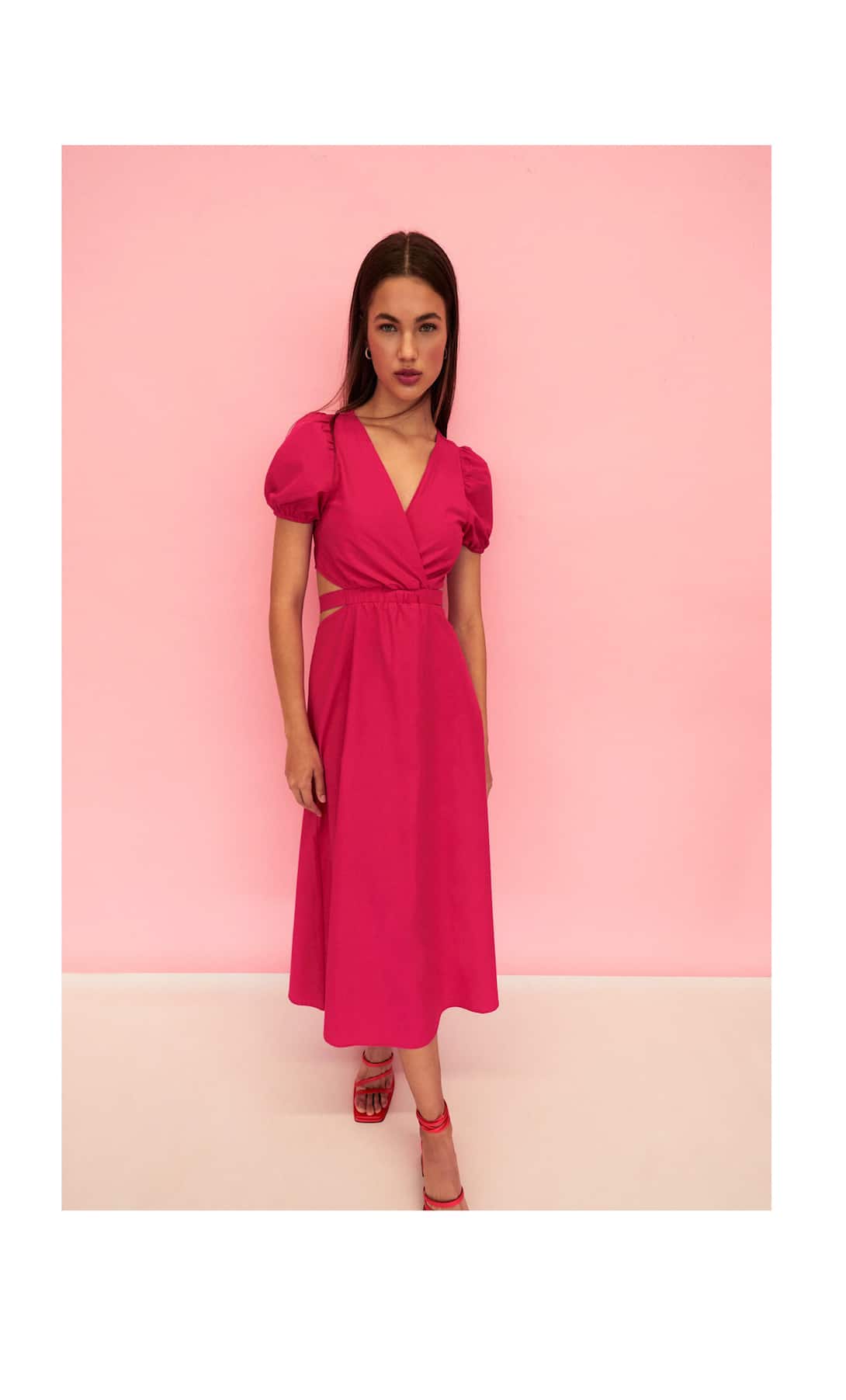 2Vestido popelín midi cut out, en el color fucsia que más se lleva