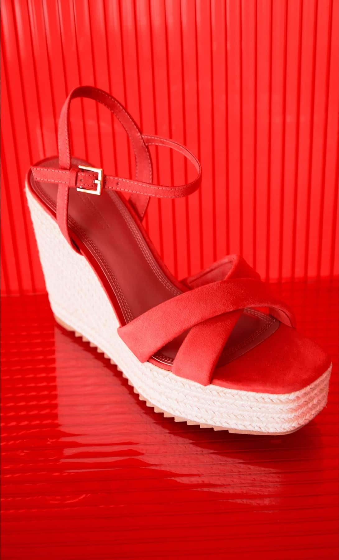 Una buena prenda de primavera o verano siempre debe ir acompañada de un calzado que la haga llamar aún más la atención. En este caso, dentro de la sección de novedades de Stradivarius, destacan estas bonitas cuñas de yute con tiras en rojo y acabadas en hebilla que además de cómodas resultan muy elegantes y fáciles de combinar. Disponibles por solo 29,99 euros, serán tu gran inversión.
