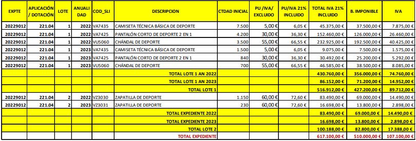Según el contrato al que ha tenido acceso MONCLOA.com, Margarita Robles busca camisetas técnicas básicas, pantalones cortos, zapatillas y chándal para realizar actividades deportivas durante los meses de estivales. Tal y como se puede apreciar en la tabla de especificaciones técnicas del material, en el caso de las básicas no podrán superar los cinco euros por unidad y en el caso de los pantalones cortos no podrán costar más de 30 euros. Igualmente, los chándal tendrán un precio máximo de 55 euros y las zapatillas para hacer deporte no podrán superar los 60 euros por par. A estos precios hay que sumarle el IVA.