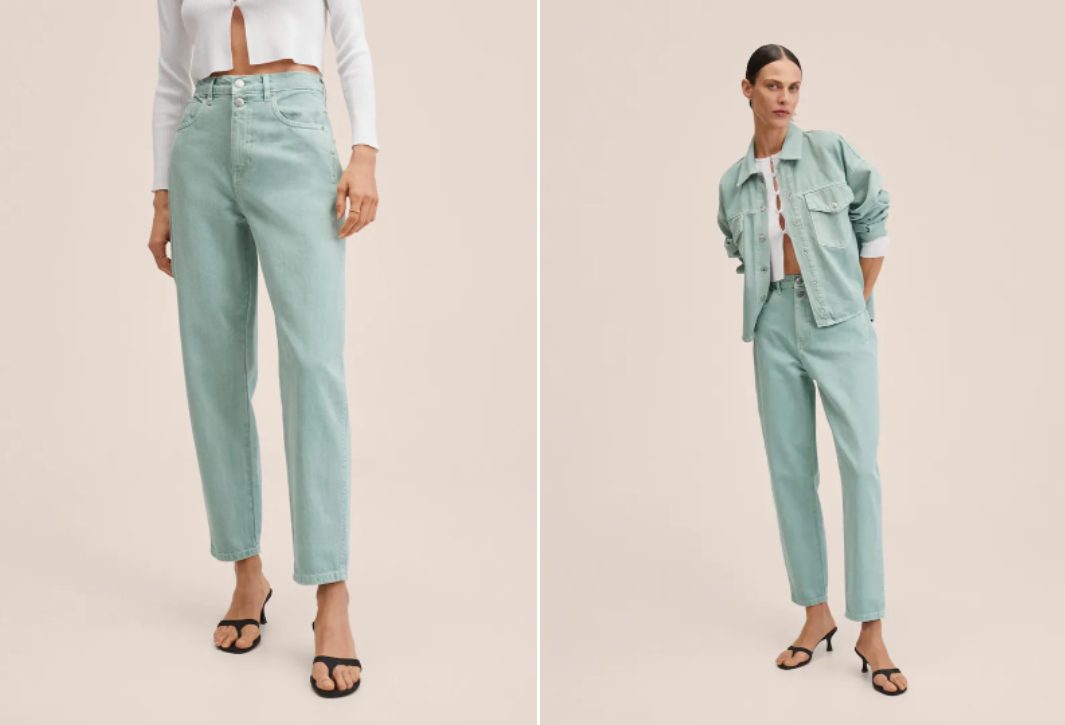 5Jeans tapered en verde agua de Mango, en el tono pastel que querrás llevar