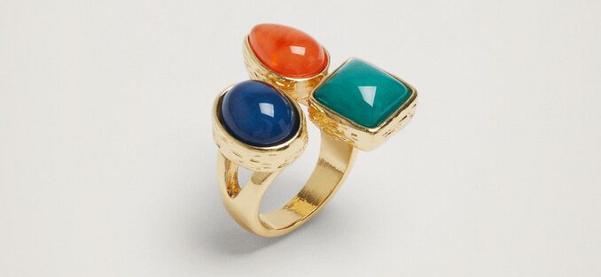 Un anillo es otro de esos accesorios que tampoco pueden faltar en tu look si quieres cerrarlo por completo. En este caso, destaca en Parfois este, de base dorada, con piedras en su parte superior en tonos tan atractivos como el naranja, el azul marino o el verde agua. Su precio, de tan solo 6,99 euros, te terminará de convencer.