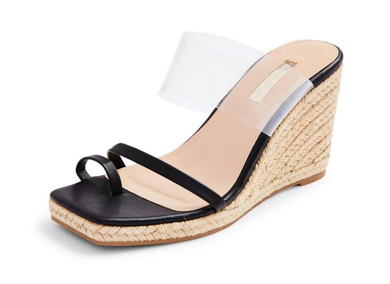 En la sección de calzado de Primark podemos encontrar estas sandalias de cuña con tira transparente en color negro. Es un modelo que es ideal tanto para la primavera como para el verano y que ofrece estilo a la par que comodidad.