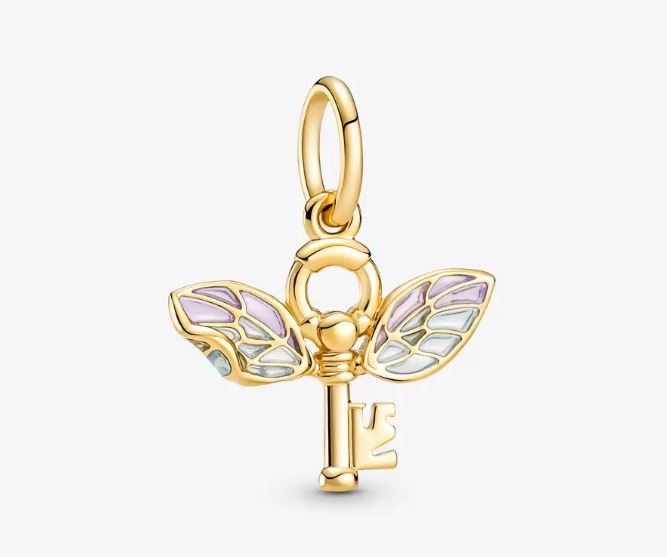 Este colgante de Pandora, está realizado con un recubrimiento electrolítico de oro de segunda ley de 14K y unas alas terminadas con la técnica plique-à-jour que le dan ese toque tan especial, permitiendo de esta forma que pueda pasar la luz a través de ellas. Para rematar un diseño tan mítico y especial, una de las alas está ‘rota’, como aquella que Harry Potter consigue atrapar en la película.