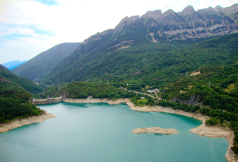 Uno de los pantanos más grandes de Huesca se encuentra entre las localidades de Búbal y El Pueyo de Jaca, y es un lugar muy frecuentando por los oscenses durante el verano. Tiene zonas habilitadas para el baño y para practicar deportes acuáticas. Además, se puede disfrutar de la tirolina doble más larga de toda Europa, que pasa por encima del pantano y parte del Valle de Tena. Si ascendemos al mirador de Búbal, se pueden admirar las bellas visas de casi todo el Valle.
