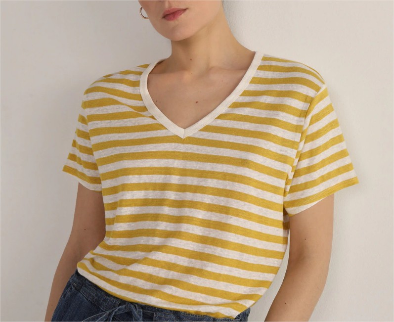 La camiseta es de manga corta, con un bonito estampado a rayas que puedes encontrar en tres colores diferentes. Si quieres hacerte con esta, aquí es donde vas a poder encontrarla.