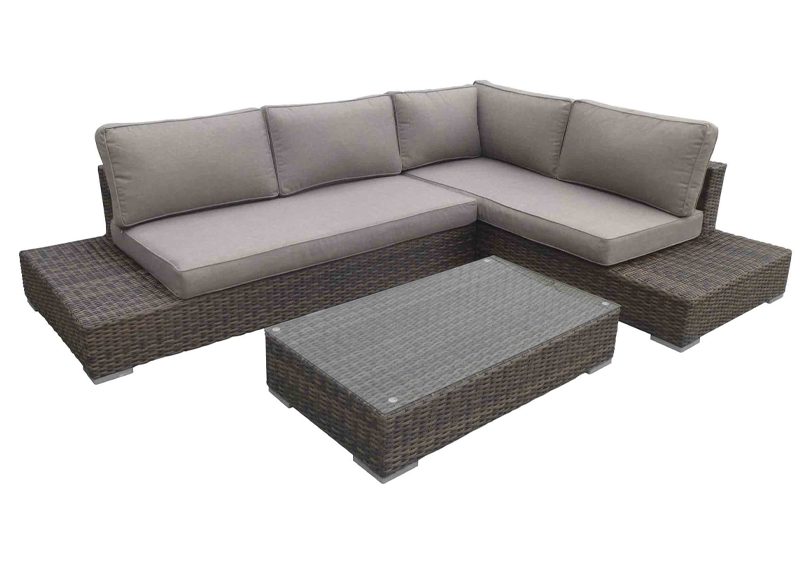 Una opción alternativa a la anterior es este conjunto de muebles de jardín MIAMI KACTUS REPUBLIC. Es un modelo de cinco plazas con dos sofás y una mesa de ratán que se encuentra a la venta, en oferta, por 799,90 euros.