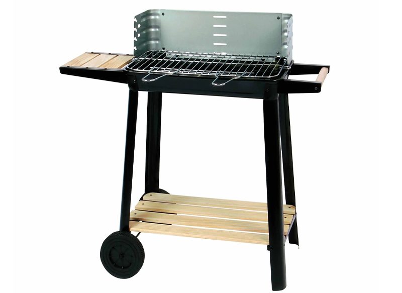 Es un modelo de barbacoa que cuenta con dos bandejas de madera y ruedas, que tiene unas dimensiones de 85,5 x 41,5 x 78,5 cm. De esta manera, se puede disfrutar en cualquier lugar del jardín o terraza de una buena barbacoa.