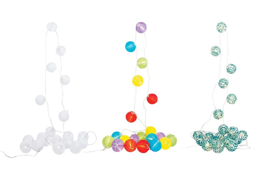 Ideales para crear un ambiente acogedor, tanto en interiores como en terrazas o jardines. Cada guirnalda cuenta con 20 farolillos con leds de larga duración. Miden 14,75 m en total, de los cuales 10 m son del cable de alimentación. Tiene un temporizador de 6 horas con repetición diaria automática. Hay tres modelos, uno en blanco, otro de colores y otro con estampado de rayas. Te lo puedes llevar por 11,99€