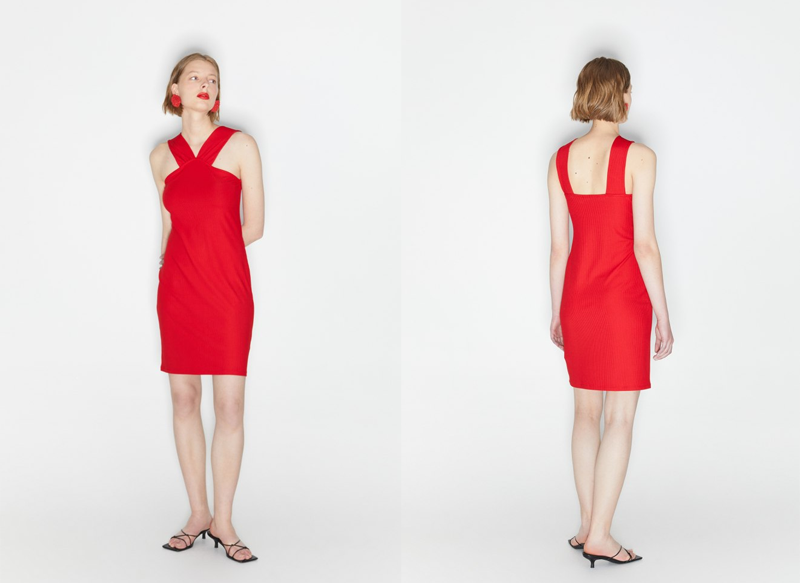 En el catálogo actual de Sfera podemos encontrar vestidos para todos los gustos y necesidades, en diferentes tonalidades para adaptarse a estos. En color negro y en rojo está disponible este interesante vestido ajustado rib, cuyo precio de venta es de solo 15,99 euros.