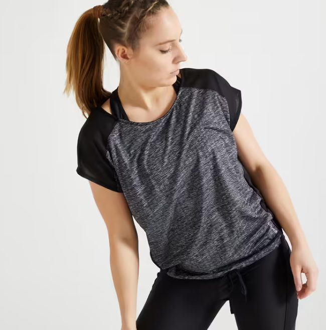 En clave fitness, otra de las camisetas que más llaman la atención dentro de la sección de novedades de Decathlon es esta. Disponible en dos colores, gris y negro, cuenta con manga corta y se adapta al cuerpo de forma sencilla. Perfecta para estar cómoda en primavera incluso aunque no hagas deporte. Por supuesto, su precio también llama la atención, pues está disponible por tan solo 7,99 euros.