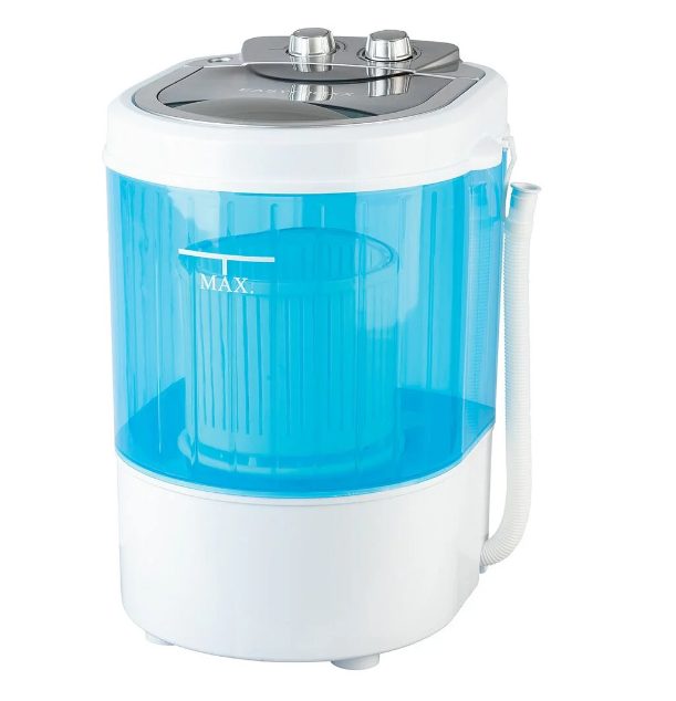Tiene una potencia de 260 W y funciona enchufada a la red eléctrica. Tiene temporizador de lavado e incluso función centrifugado. Es un aparato ideal para camping, segundas residencias, viajes o casa pequeñas. Te la puedes llevar por un precio de 64,99€.