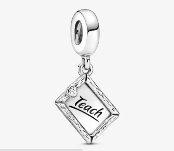 Este Charm Colgante Pizarra, se convierte en un regalo ideal para todos aquellos profes que se acaban de graduar. Esta pizarra está acabada en plata de primera ley, con marco y un detalle de corazón que nos recuerda al borrador. Este ‘charm’ por un lado tiene la inscripción ‘teach’, lo que significa enseñar, mientras que en su reverso podemos leer ‘with heart’, completando la parte de delante y diciendo: enseña con corazón.