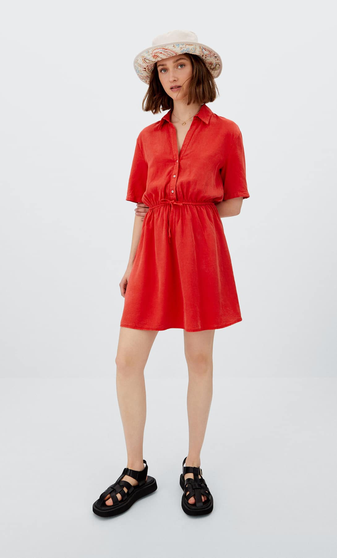 Si quieres hacerte con un armario cargado de piezas a las que siempre puedas echar mano, sin ddua este vestido camisero de Stradivarius debe estar en tu mente. Además de cómodo y elegante, llamará la atención gracias a su potente color rojo, uno de los más favorecedores en cualquier temporada. En cuanto a su precio, está disponible por solo 22,99 euros. Una gran oportunidad.