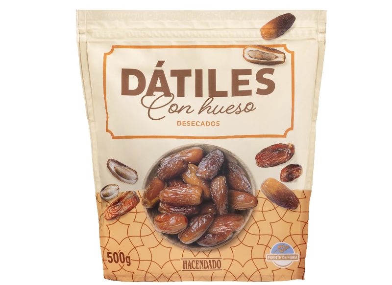 Entre las novedades de Mercadona cabe destacar sus dátiles con hueso y desecados Hacendado, un producto que se comercializa en una bolsa de 500 gramos de peso. Su precio de venta es de 2,75 euros.
