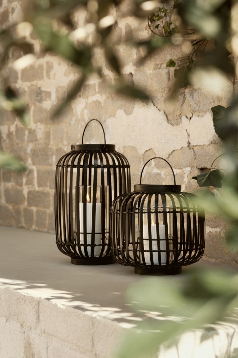 Comenzamos con la diversidad de productos que tienen las tiendas H&M, para que modernices tu terraza, con este farolillo grande de bambú. Elaborado en metal con revestimiento de bambú, con un porta velas de vidrio y su respectiva asa en la parte superior