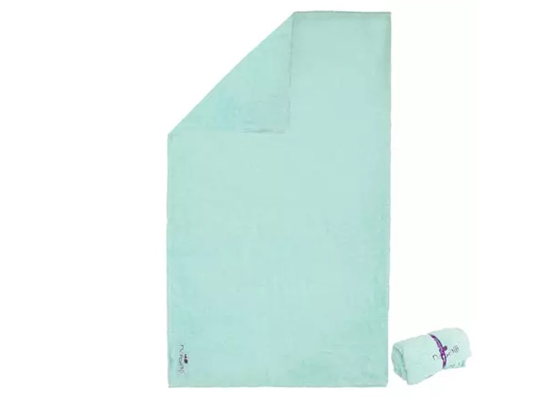 Es una toalla ultracompacta que tiene unas dimensiones de 80 x 130 cm y que te permitirá llevarla a cualquier lugar sin apenas ocupar espacio. Además, ofrece un secado suave y muy eficaz gracias a sus fibras largas. Además, sirve para absorber el sudor con solo dar golpecitos con la toalla.