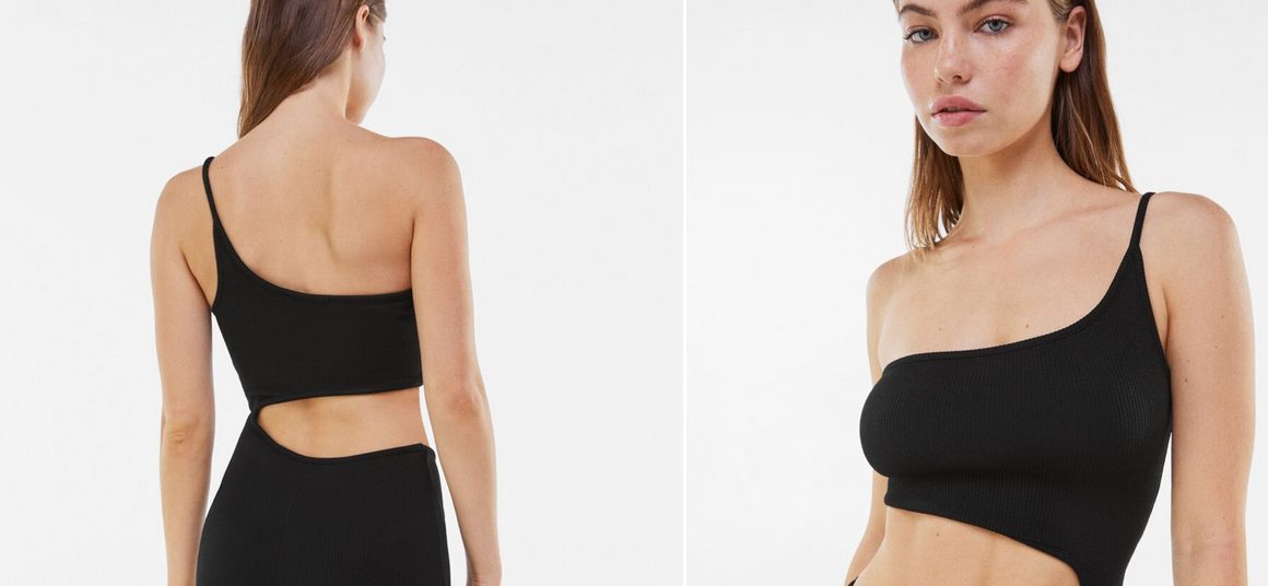 Este mono va a dejar sin palabras a todos. Y es que es lo más original y atrevido que podemos encontrar en las estanterías de Bershka. ¿te has fijado que sexy que bien le queda a la modelo? Pues estamos seguros que a ti te puede quedar igual. Un mono corto cut out de un solo tirante que deja al descubierto los hombros, la barriga y la espalda. Y que llega en forma de maillot de ciclista. Un mono atractivo y arrasador que puedes tener por solo 9,99 euros. Además de en negro, puedes elegir al color azul, que creemos que es todavía más llamativo.