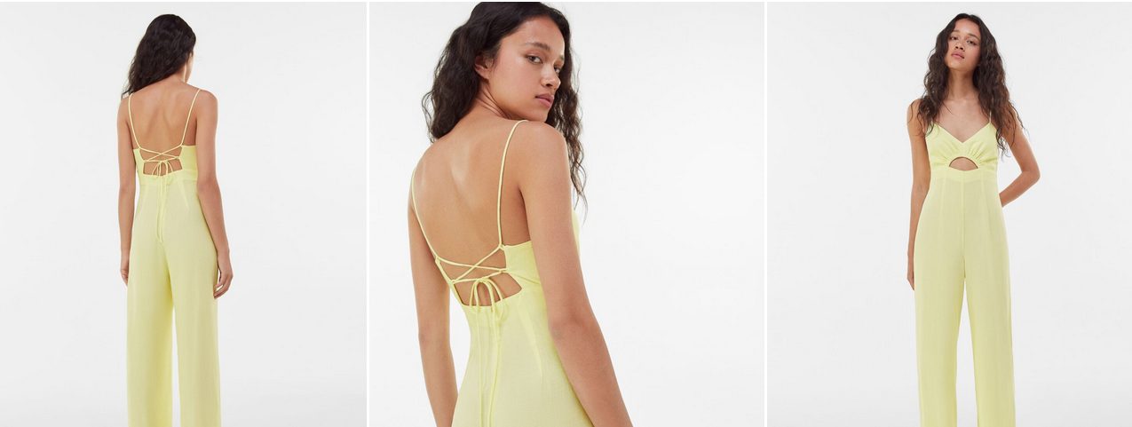 No, no todos los monos que te estamos mostrando son cortos. En Bershka también tienen para este verano monos largos, y tan elegantes como el que te demostramos a continuación. Un mono largo cut out que está arrasando porque muchas chicas lo ven ideal para lucir en fiestas nocturnas o para salir de fiesta con las amigas cuando la temperatura ha caído en unos cuantos grados. Es muy elegante, con la espalda al descubierto, y lo puedes combinar con unas sandalias de plataforma. Y el precio, pues una ganga, llega con un descuento del 40% y se queda en 15,99 euros.