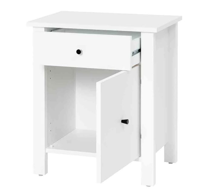 La mesita de noche de Lidl tiene un diseño rústico y a la vez elegante, que encaja armoniosamente con cualquier tipo de dormitorio. Es de resina de melamina con un bonito acabado en color plan. Tiene una puerta y un cajón de recorrido suave, ambos con tiradores de metal. Las patas están protegidas para no dañar el suelo. Mide 56 x 40 x 65,6 cm y tiene un precio de 54,99€.
