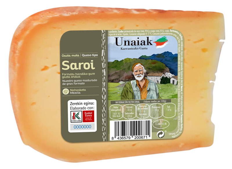 El Saroi Unaik es uno de los quesos más antiguos del País Vasco, un producto de textura suave y sabor intenso con notas a mantequilla. Se vende en piezas de 5 kg y cuñas de 1 kg y 200 gramos. Su precio es de 15,95 euros el kilo.