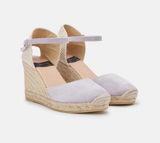 Otro modelo ideal de alpargatas de cuña para este verano son estas de la firma Gaimo, fabricadas en piel de serraje de un bonito color lila muy primaveral. Es un diseño clásico de corte cerrado, con talonera y suela de yute, puntera redonda, plantillas acolchadas y una cuña de 8 cm. Tiene un cierre de pulsera en el tobillo con hebilla lateral, y están hechas artesanalmente en España. Tienen un precio de 59 € y las puedes adquirir aquí. [nextpage