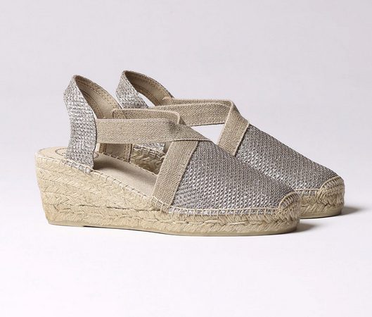 Dale un toque de brillo a tus looks informales este verano con estas alpargatas de la firma Toni Pons. La cuña tiene 6 m y 2 cm de plataforma, así que tienen una pequeña inclinación que las hace especialmente cómodas. La cuña es de yute y goma, y el empeine es de hilo de algodón. Lleva elásticos cosidos a las cintas para una mayor sujeción. Una apuesta segura para combinar con tus prendas más veraniegas. En El Corte Inglés tienen un precio de 49,95 € y las puedes conseguir aquí. [nextpage