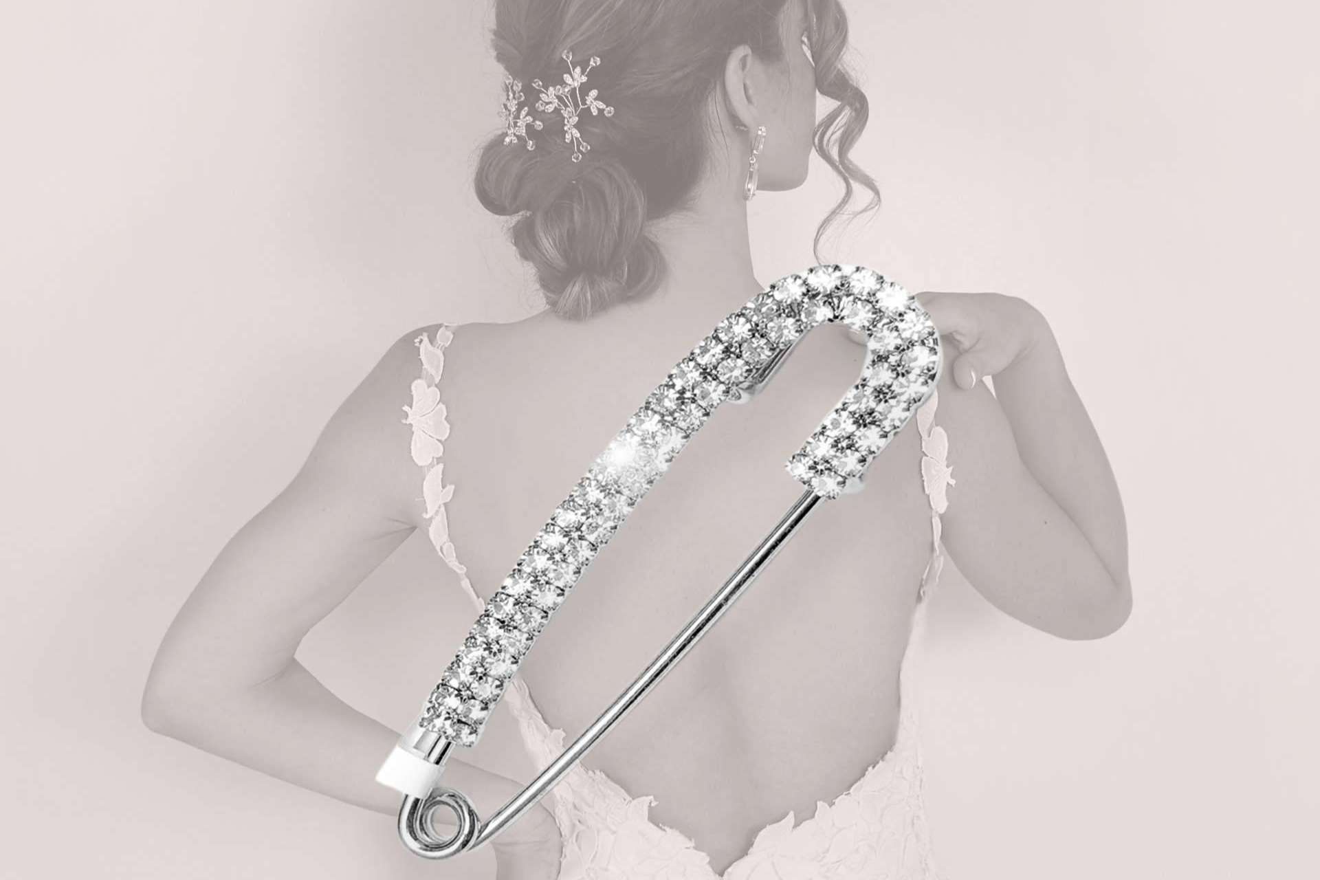 Otro de los elementos importantes es el broche, un detalle que termina la perfecta ejecución del vestido, adecuando la horma al cuerpo de la novia. Un elemento de seguridad que mantendrá tranquila a la novia durante el célebre momento, sabiendo que su vestido lucirá exactamente como debe, sin que pierda su forma o lugar, por el movimiento. Es un accesorio muy llamativo que se puede lucir de forma exterior, con detalles muy recatados que le dan mucho más cuerpo y atención al diseño, decorados con brillantes o detalles muy agraciados. También se puede lucir dentro del vestido, colocándose a la altura de la cremallera del vestido.