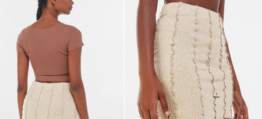 Con estas faldas de Bershka vamos a poder lucir más sexys que nunca. El modelo que lleva la chica de la imagen nos parece lo más atractivo para las noche de verano. Lo conseguimos gracias a mi falda con costuras que puedes tener en tres colores: arena, negro y fucsia. Eso sí, date prisa porque es una de las más vendidas para la marca de Inditex. Y sí, solo vale 3,99 euros.