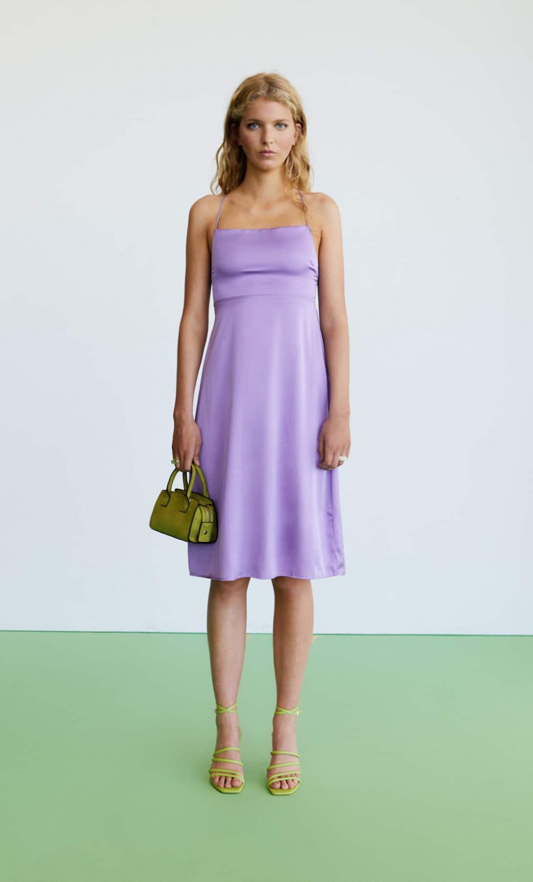 Otro de los tonos que no podrán faltar en tu armario esta temporada es el lila. Se trata de un color pastel que combina con todo y favorece a todas y que puedes encontrar en vestidos como este de Stradivarius. De corte midi, muy sencillo, pero que consigue atrapar miradas, ya lo puedes conseguir en la tienda por solo 25,99 euros. Una auténtica oportunidad.