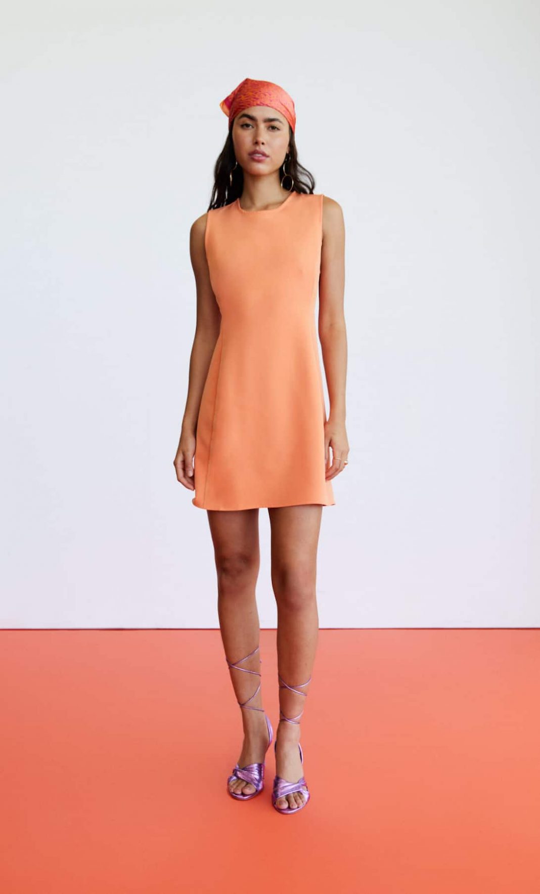 Este vestido corto de Stradivarius con cuello redondo nos transporta de forma irremediable a la época de la moda de los años 60. En clave mini, lo puedes conseguir en tonos tan favorecedores como este naranja, que resultará muy interesante, sobre todo, en verano. Además, su precio es de tan solo 22,99 euros. Sin duda, una buena pieza para el día a día.