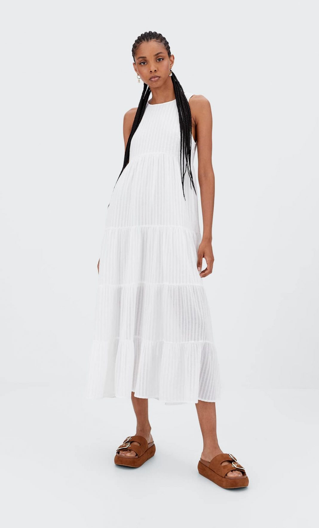 9Vestido largo de Stradivarius, en el color blanco del verano