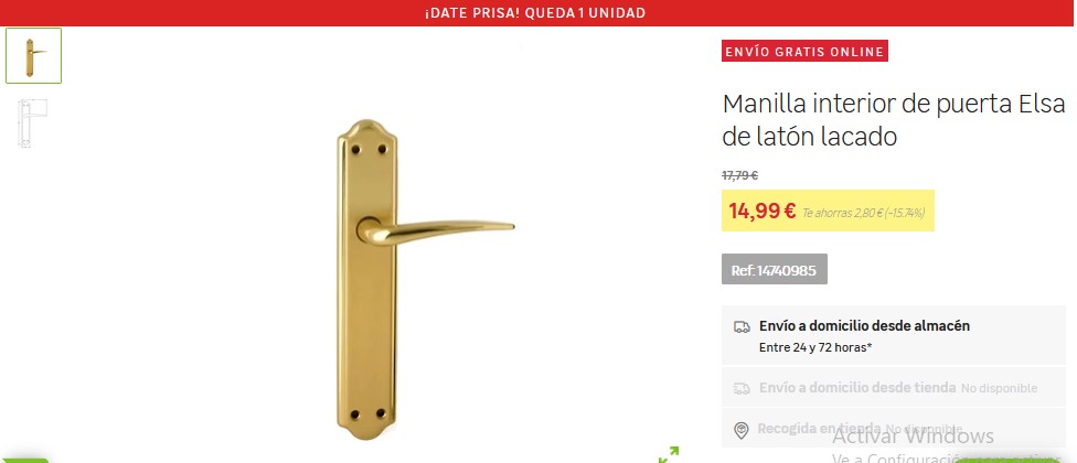 Es una increíble manilla fabricada en latón que está completamente de color dorado, por lo que son aptas para todas las puertas de interior. Cuenta con un increíble diseño sencillo y tradicional que está protagonizado por grandes líneas rectas. Además, cuenta con una placa lisa alrededor por lo que es idónea para los usos habituales en puertas con medidas frecuencias de pasos. Por lo que, si la desean obtener solo deben entrar a Leroy Merlín a un precio de 14,99 €.