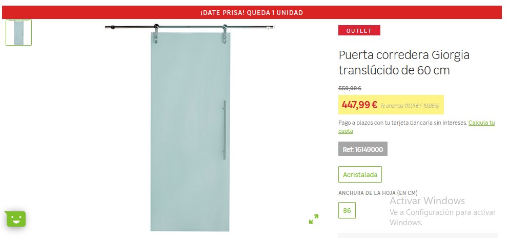 Es una increíble puerta corredera de cristal translúcido de diseño, perfecta porque ahorra espacio en nuestro hogar, con guía incluida de acero inoxidable. Estas increíbles sobrepuertas sirven para deslizarse por la pared o empotradas, deslizándose dentro del muro. Inclusive, son perfectas para las habitaciones pequeñas, por lo que se puede aprovechar al máximo los espacios. Si la desean obtener solo deben entrar a Leroy Merlín a 447,99 €.