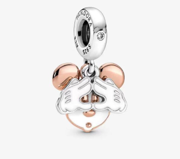 Sin duda, este es uno de los ‘charms’ que más nos gustan de todos los disponibles en Pandora. El Charm Colgante Doble Mickey Mouse de Disney está acabado en plata y con un recubrimiento electrolítico de oro rosa de segunda ley de 14k.