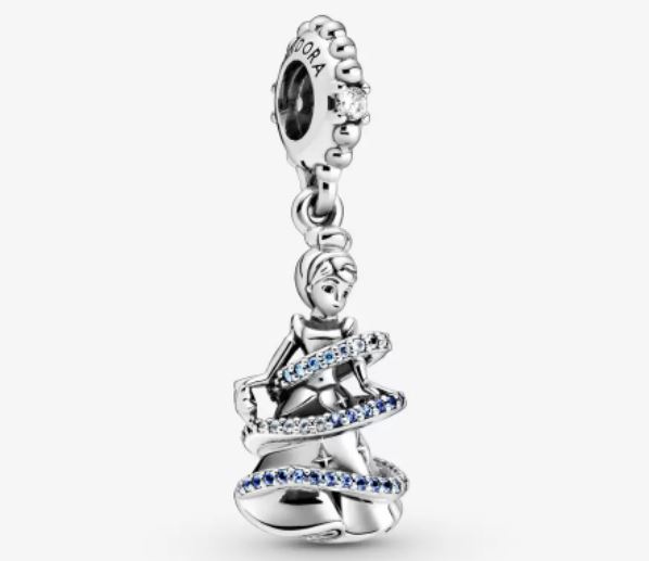 Este ‘charm’ de Pandora, representa uno de los momentos más tiernos, cuando Cenicienta se viste para el baile. Acabado a mano en plata de primera ley, este ‘charm’ de Cenicienta nos transporta a un mundo de magia e ilusión, representando a la propia princesa con una espiral que la rodea decorada con gemas azules.
