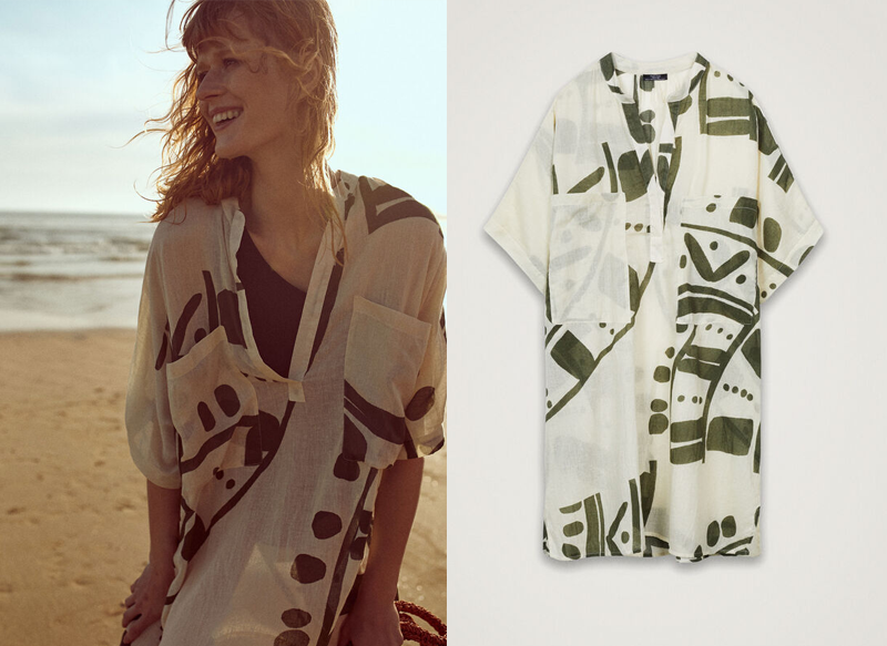Este vestido camisero estampado es la prenda que necesitas para tus escapadas a la playa este verano. Disponible en color crudo y caqui, es una de las novedades más destacadas de Parfois, y se encuentra a la venta por tan solo 25,99 euros.