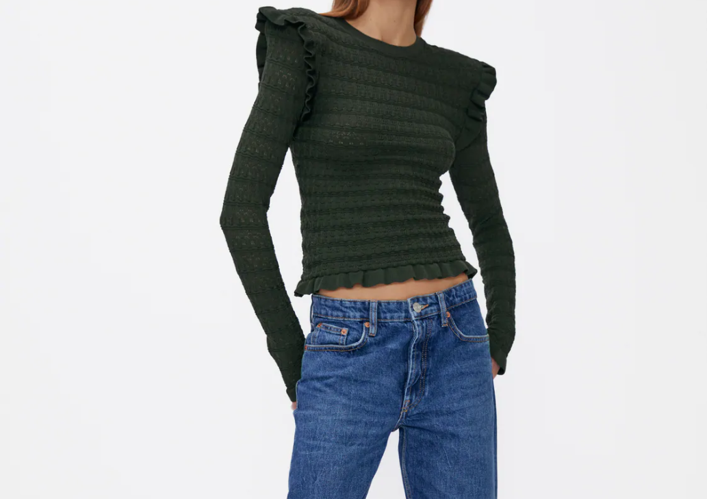Gracias solo al diseño de este jersey, que podemos encontrar en Zara a un precio excelente, dará la sensación de que nuestro aspecto físico es mucho más estilizado. Además, su color, un bonito verde oscuro, sentará genial tanto a rubias como a morenas.