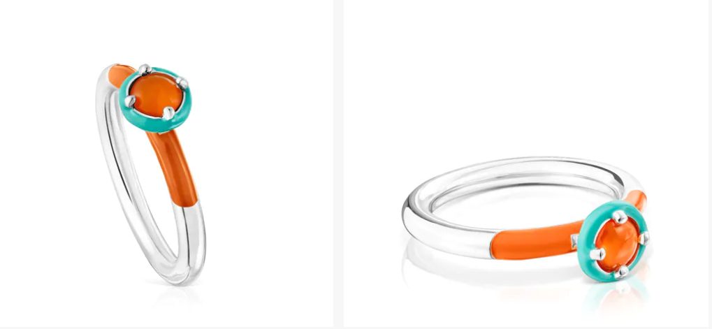 Si buscas un anillo elegante pero que a la vez refleje toda la esencia del verano, sin duda esta opción de Tous se convertirá en tu favorita. Está elaborado en plata, con cornalina y esmalte, y destaca or sus tonos naranjas y azules, muy frescos. En cuanto a su precio, lo puedes conseguir por solo 75 euros. Una buena oportunidad.