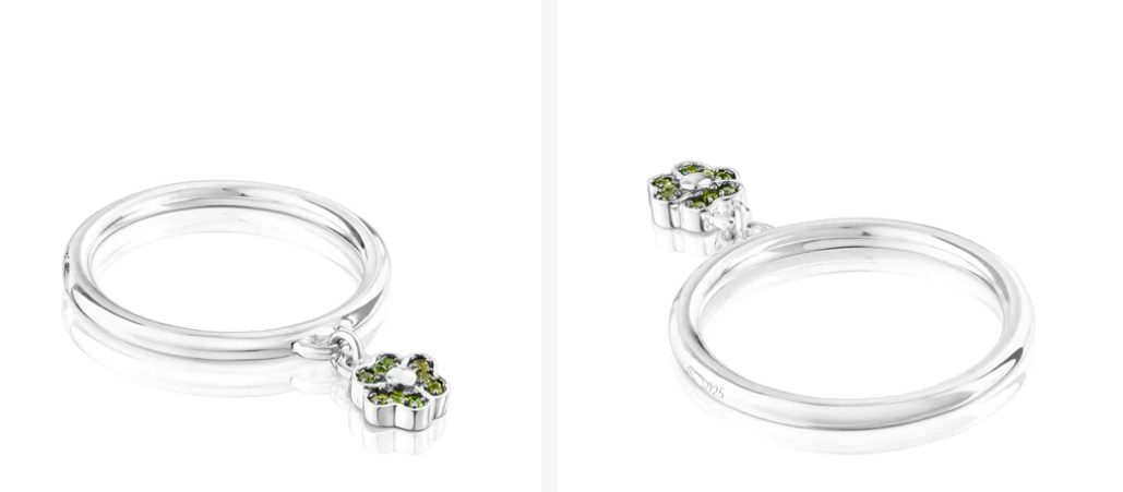Son muchas las ocasiones en las que Tous termina sorprendiendo a través de joyas sencillas pero imprescindibles. En este caso, lo hace con un anillo sencillo de plata que destaca por contar con un colgante de flor en tonos verdes en el centro. Su precio, de tan solo 65 euros, lo convierte además en una opción económica.
