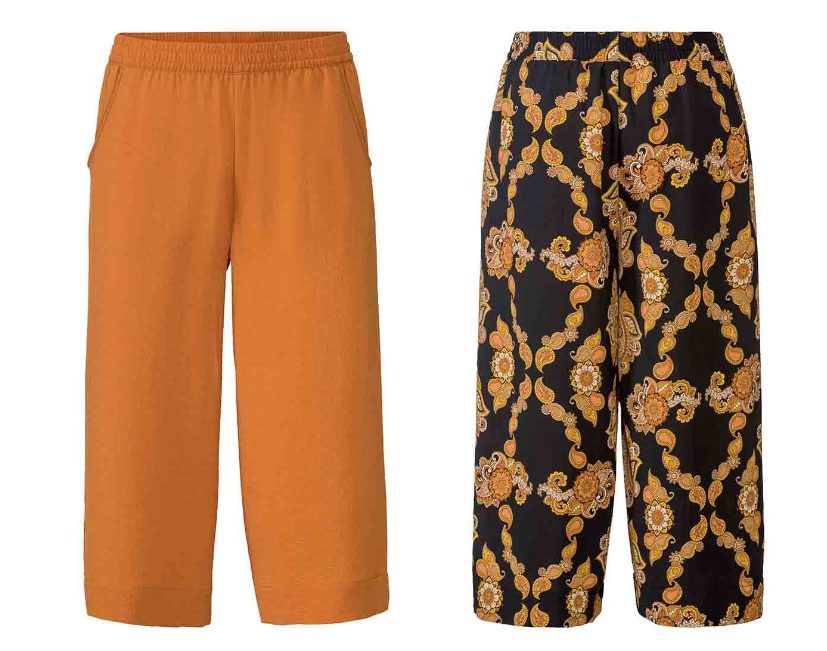 Consigue la prenda de moda pare este verano en Lidl a un precio de ganga. Se trata de un pantalón culote, con un diseño muy en tendencia, de corte holgado y largo 3/4. Tiene bolsillos laterales y una confortable cintura elástica de talle normal. El tejido es vaporoso, muy ligero y agradable, y está disponible en tallas desde la 38 a la 48. Hay dos diseños, uno en naranja y otro estampado. Te lo puedes llevar por solo 5,99€.
