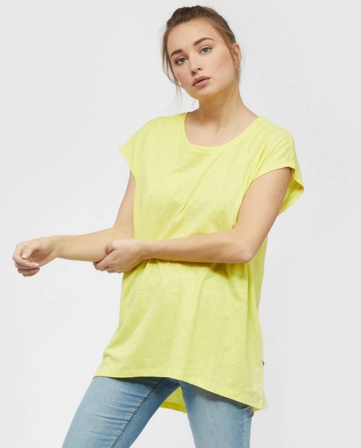 Una camiseta básica puede resolverte cualquier look, desde el más informal hasta tu estilismo de oficina, solo tienes que saber combinarla. La marca Noisy May nos ofrece esta camiseta de corte sencillo, con manga corta, cuello redondo y largo asimétrico más largo en la parte trasera. Es de algodón y poliéster de color liso. Disponible en tono amarillo y en rosa. Tiene un descuento del 50% y puedes conseguirla por 6,50€. Busca tu talla en este enlace.